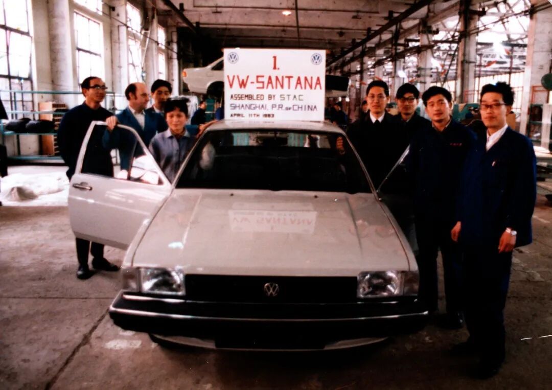 ▲1983年4月,中国首辆桑塔纳轿车在上海组装下线。
